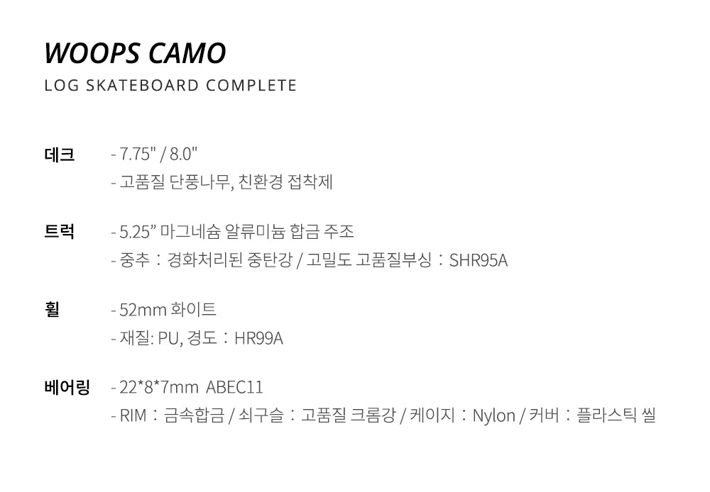 로그 웁스 카모 스케이트보드 완제품 컴플릿